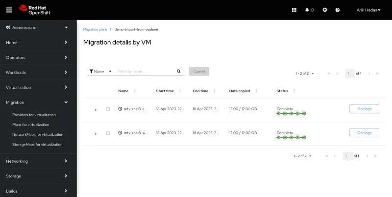 Alongside the added OpenStack support, MTV is now fully integrated into the OpenShift User interface. This makes the tool particularly intuitive to use and significantly enhances the user-friendliness of migrations to OpenShift.