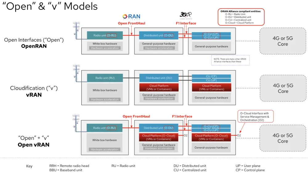 Red Hat’s focus is primarily in WG6, and initially we help monitor progress in aspects relevant to clouds in WGs 4, 5, 7, 8 and 9. Most vendors are building their RAN components to these specifications and those are implied when claiming “open RAN compliant.” The correct statement would be “O-RAN Alliance compliant.”