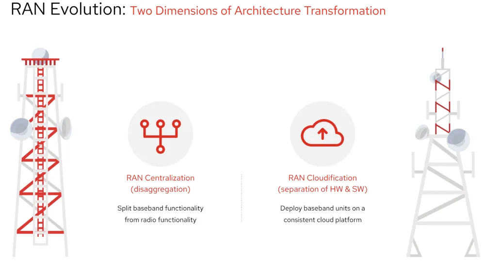 There are many names and acronyms related to the evolution of RAN, like vRAN, open RAN, O-RAN etc. A key point to clarify is that RAN evolution means both the disaggregation of mobile network base stations into more standardized entities (this is widely known as functional split), as well as the introduction of cloud technology to enable automated deployment and scaling and to optimize the location of workloads.