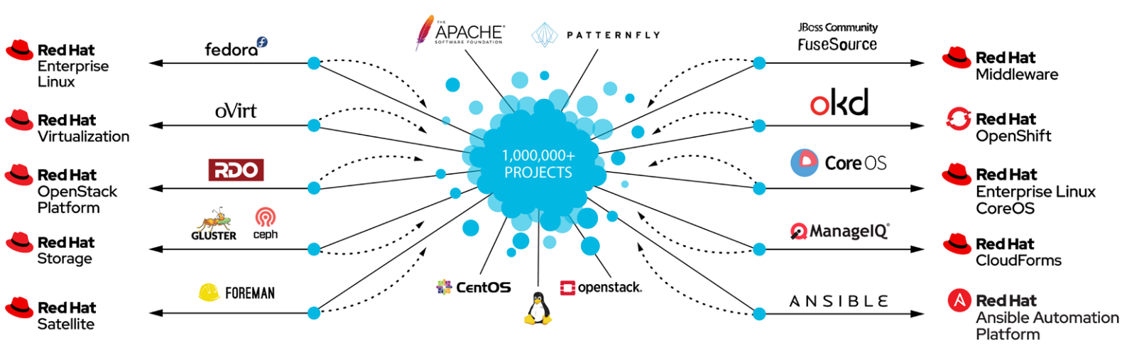 Answer: Red Hat supports, catalyzes, and participates in open source communities to build better technologies and advocate for our customers in them. Red Hat transforms community-driven projects into enterprise-ready products—we combine multiple upstream components into integrative, cohesive wholes that solve problems for our customers. Every product Red Hat ships is open source. In fact, before we create a product, we ensure that we are able to make changes to the projects we intend to include in it.