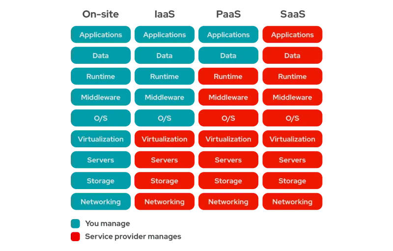 There are 3 main types of cloud computing as-a-service options and each one covers a degree of management for you: infrastructure-as-a-service (IaaS), platform-as-a-service (PaaS), and software-as-a-service (SaaS).