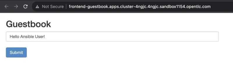 - Creation of guestbook namespace, where I’ll be carrying out the deployment using the Red Hat Certified Collection