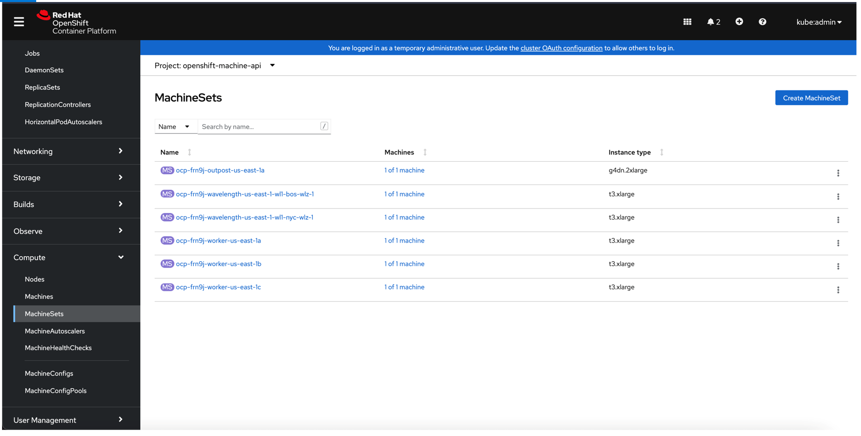 Al utilizar Red Hat OpenShift en una arquitectura de la nube, una de las abstracciones de software más fundamentales es la noción de MachineSets. Al determinar la cantidad deseada de nodos para un clúster, los MachineSets controlan la gestión de máquinas, que a su vez gobierna los recursos subyacentes (es decir, las máquinas virtuales) disponibles en la actualidad.