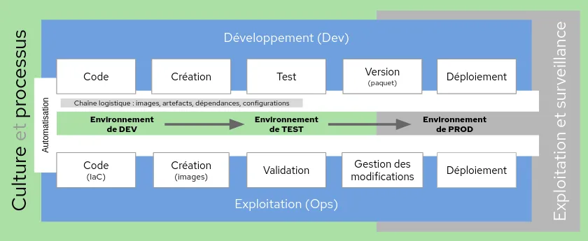 Ai-je parlé des processus ? Et oui… Eux aussi sont importants. Il n'y a pas si longtemps, on développait encore les applications sans se soucier du déploiement, de l'exploitation et de la maintenance. Ces questions, on ne se les posait qu'après. Les déploiements et mises à jour d'applications restaient rares, car ils impliquaient de longs cycles de test et potentiellement des temps d'arrêt. L'arrivée du DevOps a tout changé. Cette méthode a permis d'accélérer le développement, d'augmenter la fréquence des déploiements, d'en améliorer la qualité et de supprimer de nombreux écueils rencontrés durant l'exploitation. C'était LA solution idéale !