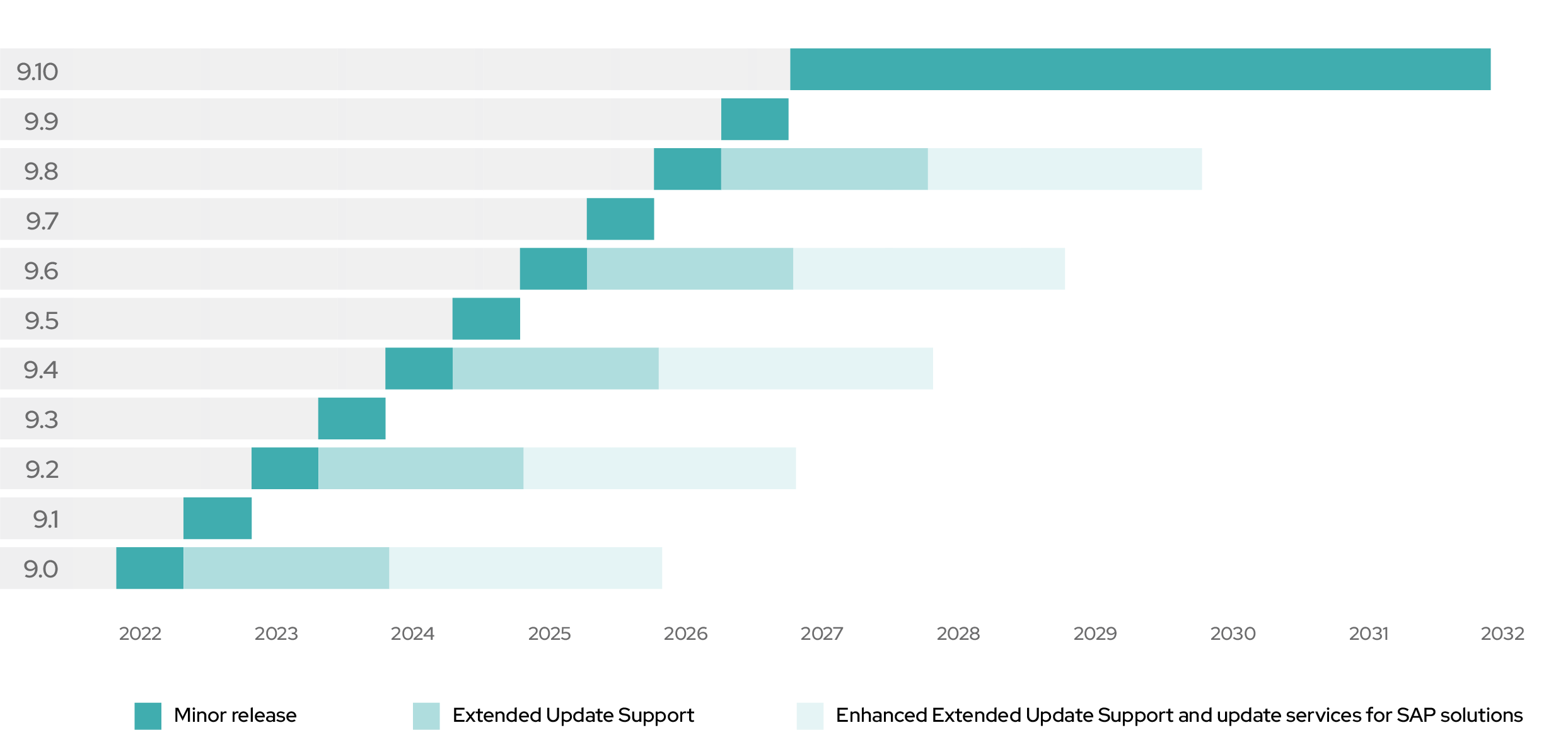- Planifiez les transitions du cycle de vie du système d'exploitation selon vos conditions grâce à un calendrier prévisible et des conseils clairs de la part de Red Hat.