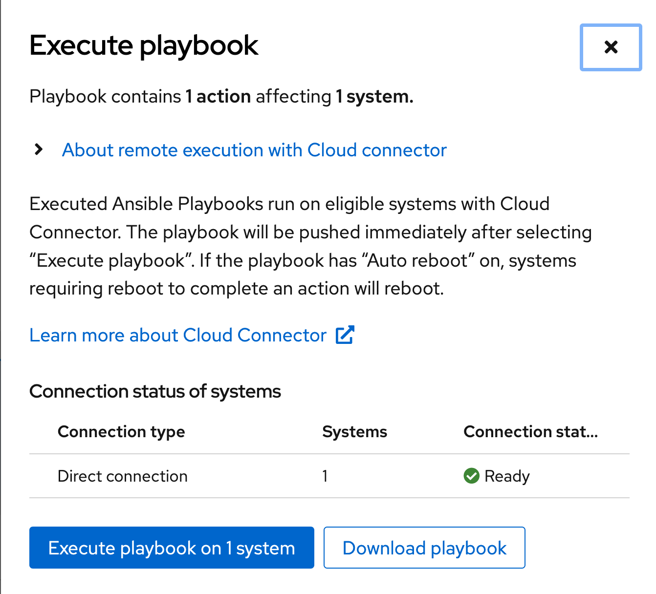 Since I’m connected and ready to go, I just click Execute playbook on this screen.