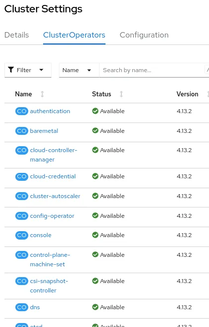 All of the Cluster Operators that make up a given OpenShift version can be viewed inside the cluster settings section of the OpenShift Console(see Image-1), as well as through the OpenShift CLI.