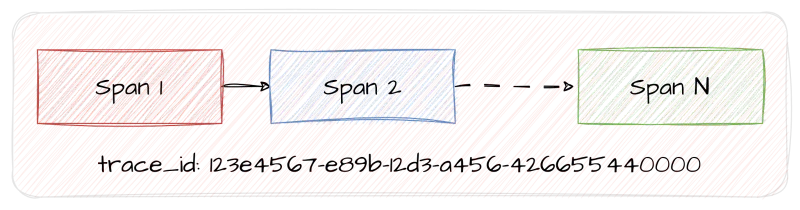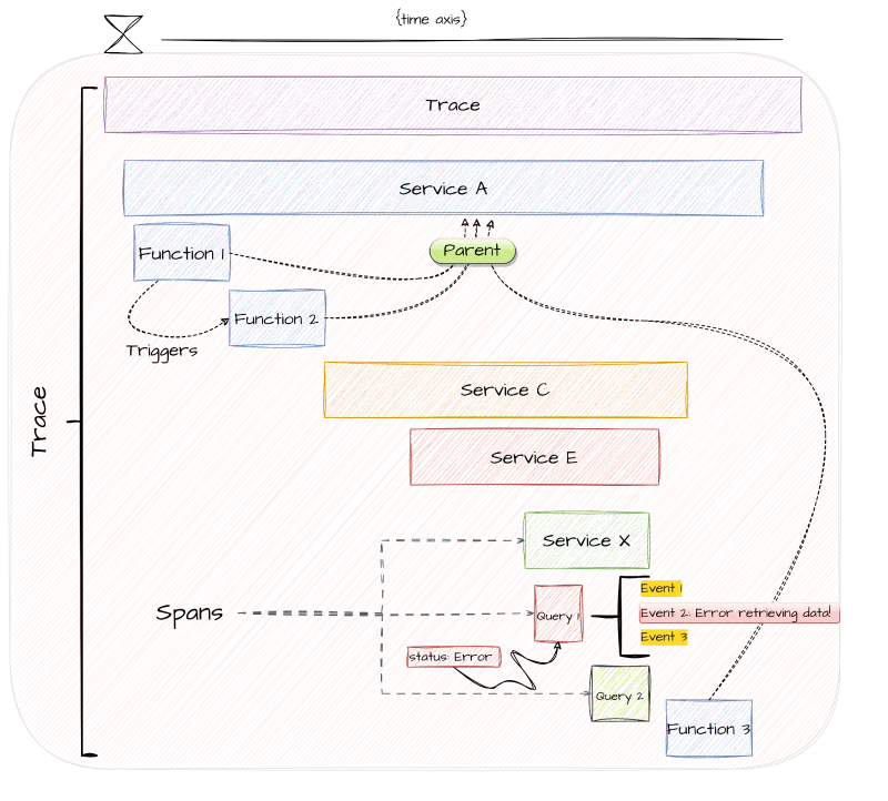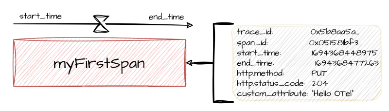 Remember the log with timestamps? That’s very close to the definition of a Span: a structured log representing an operation occurring between a start and an end timestamps. It may be decorated with other attributes and status codes representing how a span resulted.