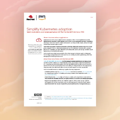 Red Hat and AWS offer a fully managed, enterprise-grade container platform to help you adopt Kubernetes faster and focus on creating innovative applications, rather than managing the underlying infrastructure.